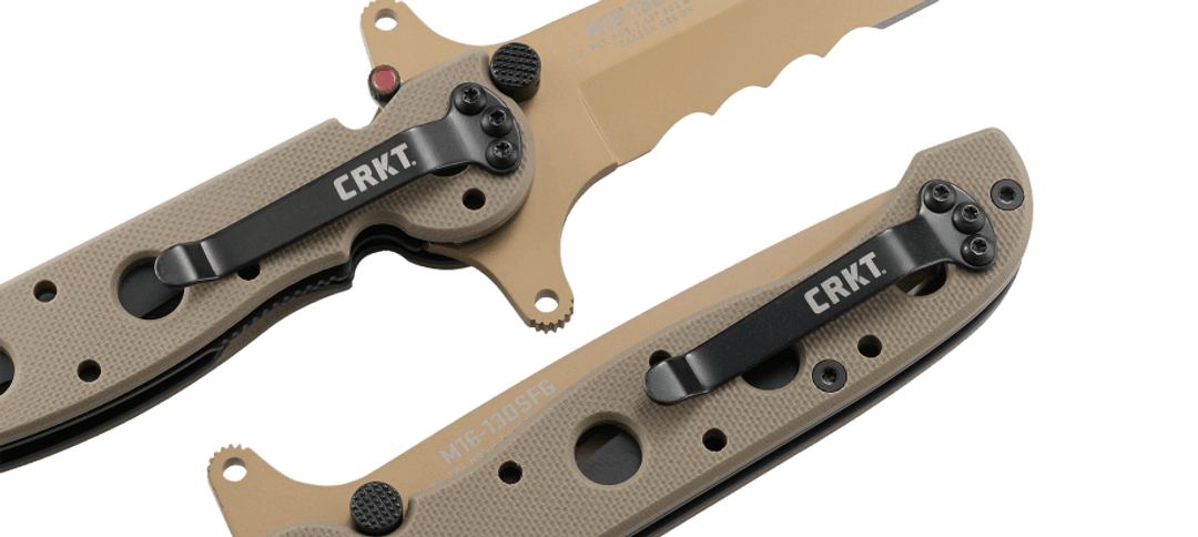 I processen med at udvikle vores serie af Carson specialstyrker G10 M16®-modeller, blev det tydeligt, at der var en efterspørgsel efter disse modeller fra koalitionsstyrker, der tjener i ørkenmiljøer. Denne kniv deler et unikt design, der tilbyder en kombination af funktioner i Carson SF-serien efterspurgt af militære indkøbsspecialister. Den har en kombineret knivskarp Veff™ takket skær. Den åbne konstruktion gør det muligt at indbygge to Carson Flippers, hvilket resulterer i et fast greb - indtil nu sjældent set i foldeknive.