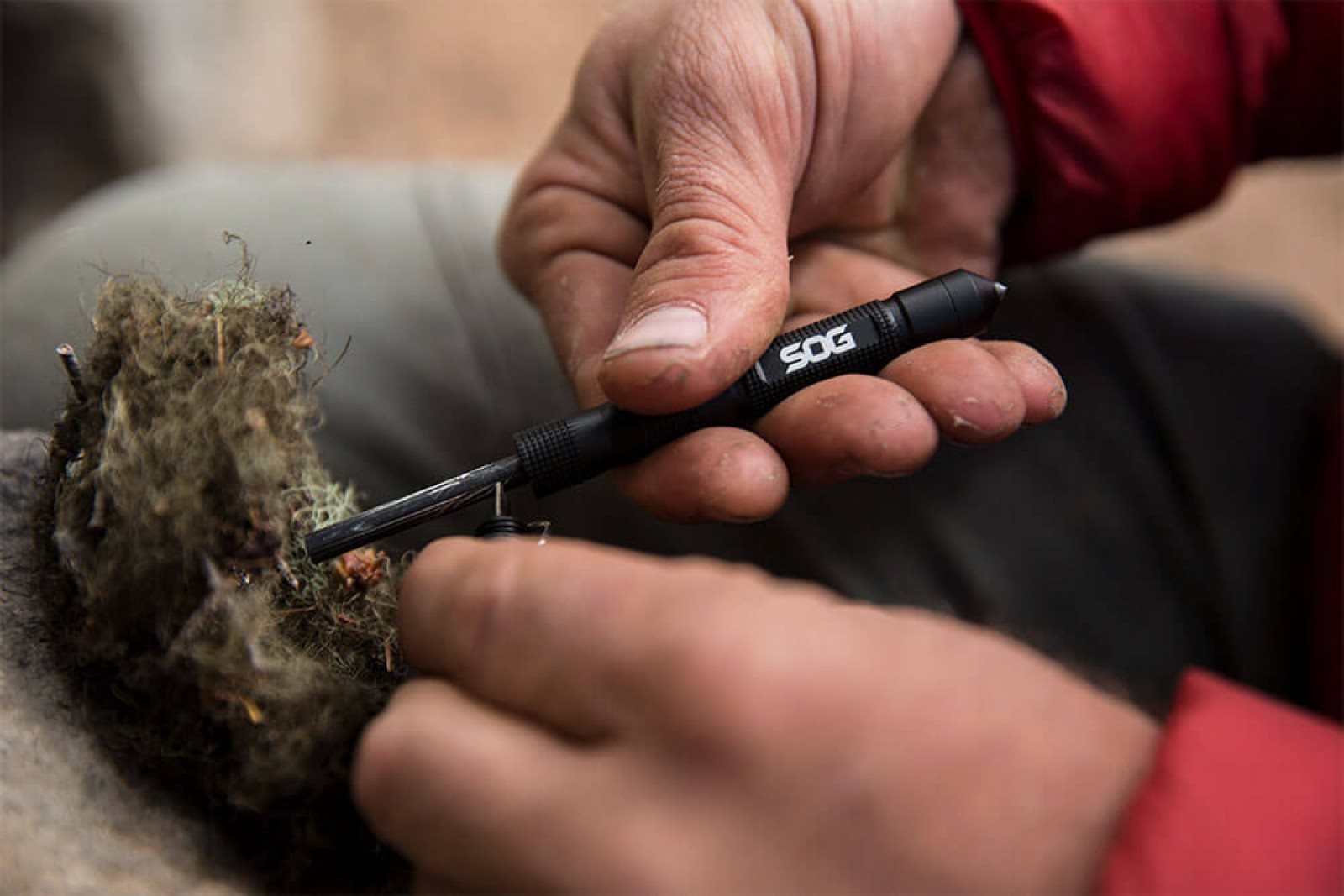 It's hard to find as many survival features in an item as one would in the Flint. The Flint packs enough survival and defensive components to get you through the night or away from danger. In a tool the size of a pencil, the Flint has a built-in fire starter, steel wool tinder compartment, carbide-tipped glass breaker, and safety whistle. Weighing in at less than an ounce and measuring 4.3-inches long, it's small enough to be carried on a lanyard, in a pocket, or in a pack. Wherever the destination is, it's always nice to have a backup plan.