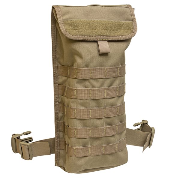 Hydration module that doubles as a small backpack, attaches to rear plate carrier or any PALS compatible harness. Will accept up to 100 oz. bladder. PALS webbing for additional accessory pouches.