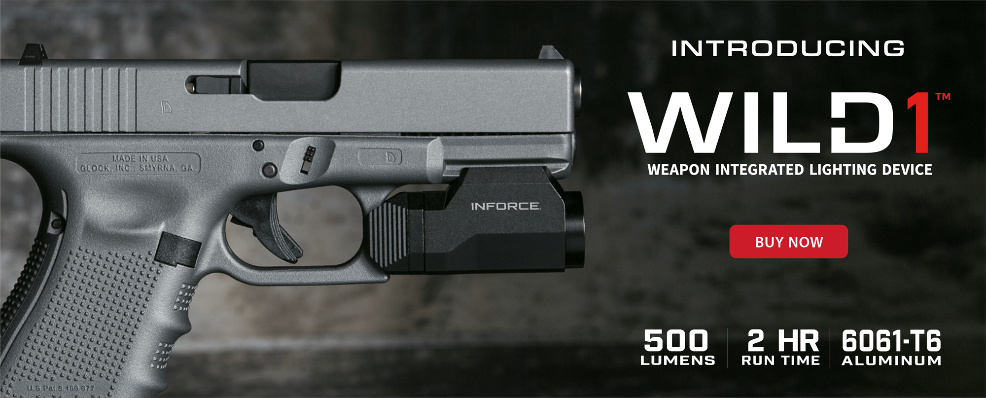 Culminating years of listening, our compact Wild1 pistol light combines traditional Inforce styling with best-in-class durability, a studied optimal-blend of throw and spill, and convenient activation by users with small and large hands alike.