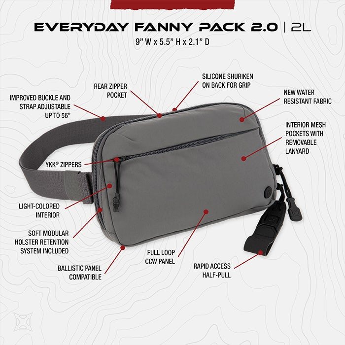 Everyday Fanny Pack 2.0 er kompakt, alligevel kraftfuld og er den ultimative CCW-Ready bæltetaske, designet i samarbejde med Lena Miculek.