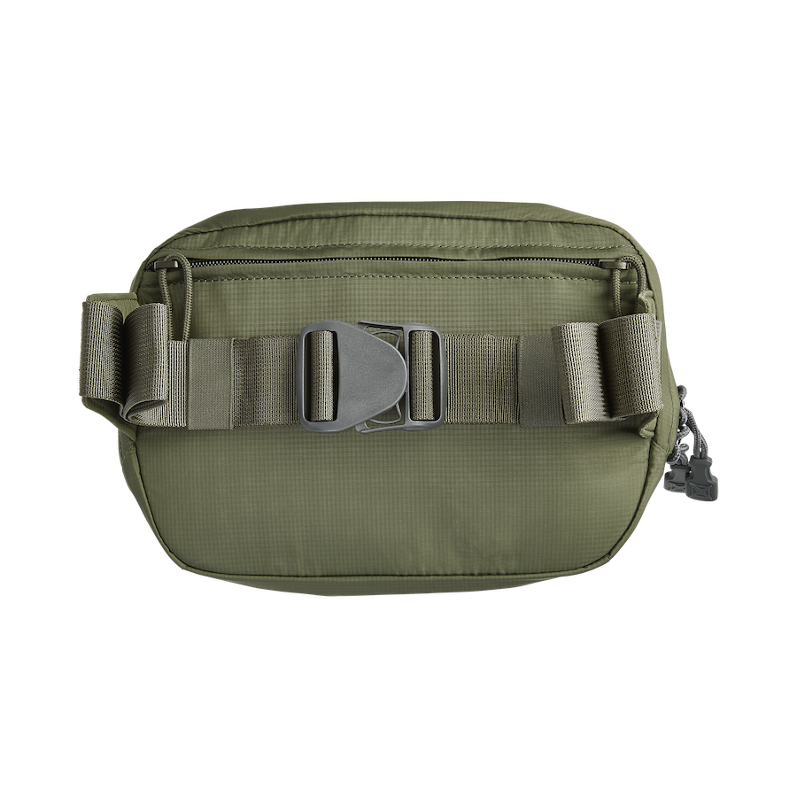 • Denne multi-purpose bæltetaske kan bæres på ikke bare én, men tre forskellige måder: rundt om din talje, på tværs af kroppen eller som en chestrig fastgjort til din rygsæks skulderstropper foran på brystet