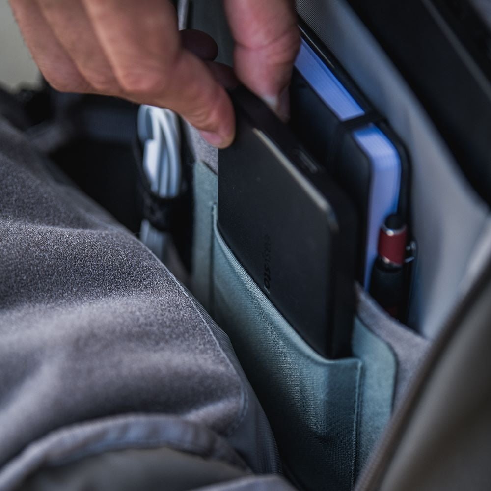 • Dobbeltlags, polstret laptop/tablet-lomme med løkkeforing til alsidig teknologiopbevaring og ekstra Tactigami-organisering.