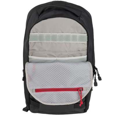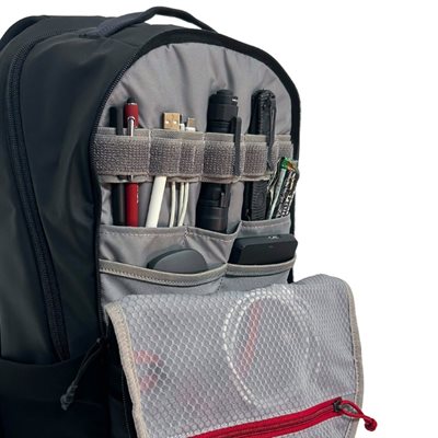 • EDC-paradis. Lynlås foran afslører alt - administrationslommer, stræklommer, elastiske løkker - alt har sin plads.